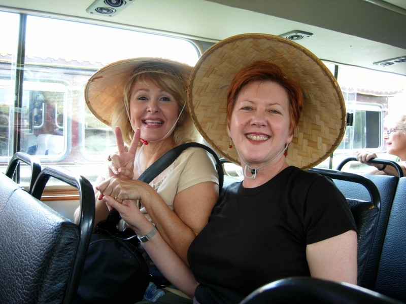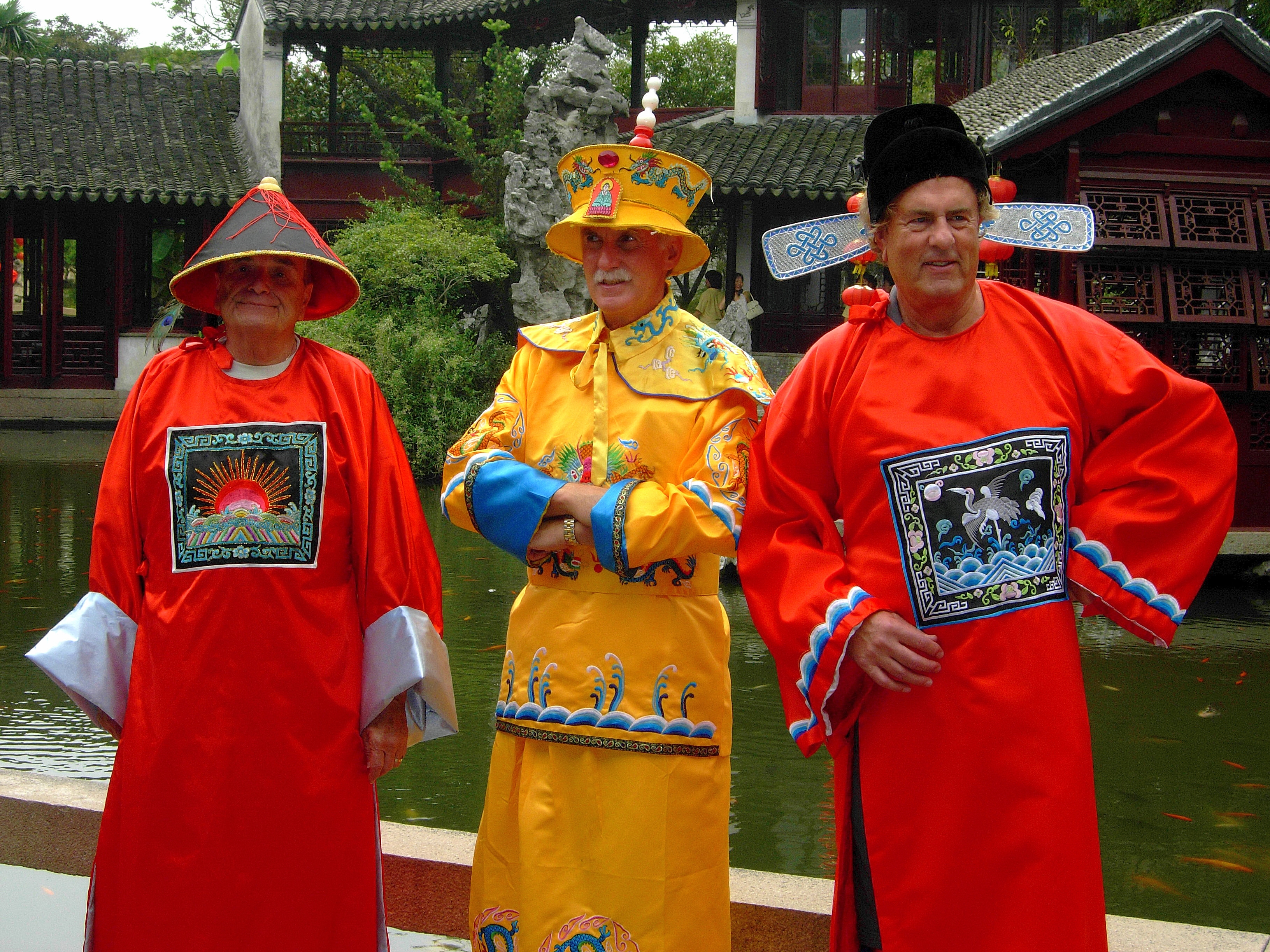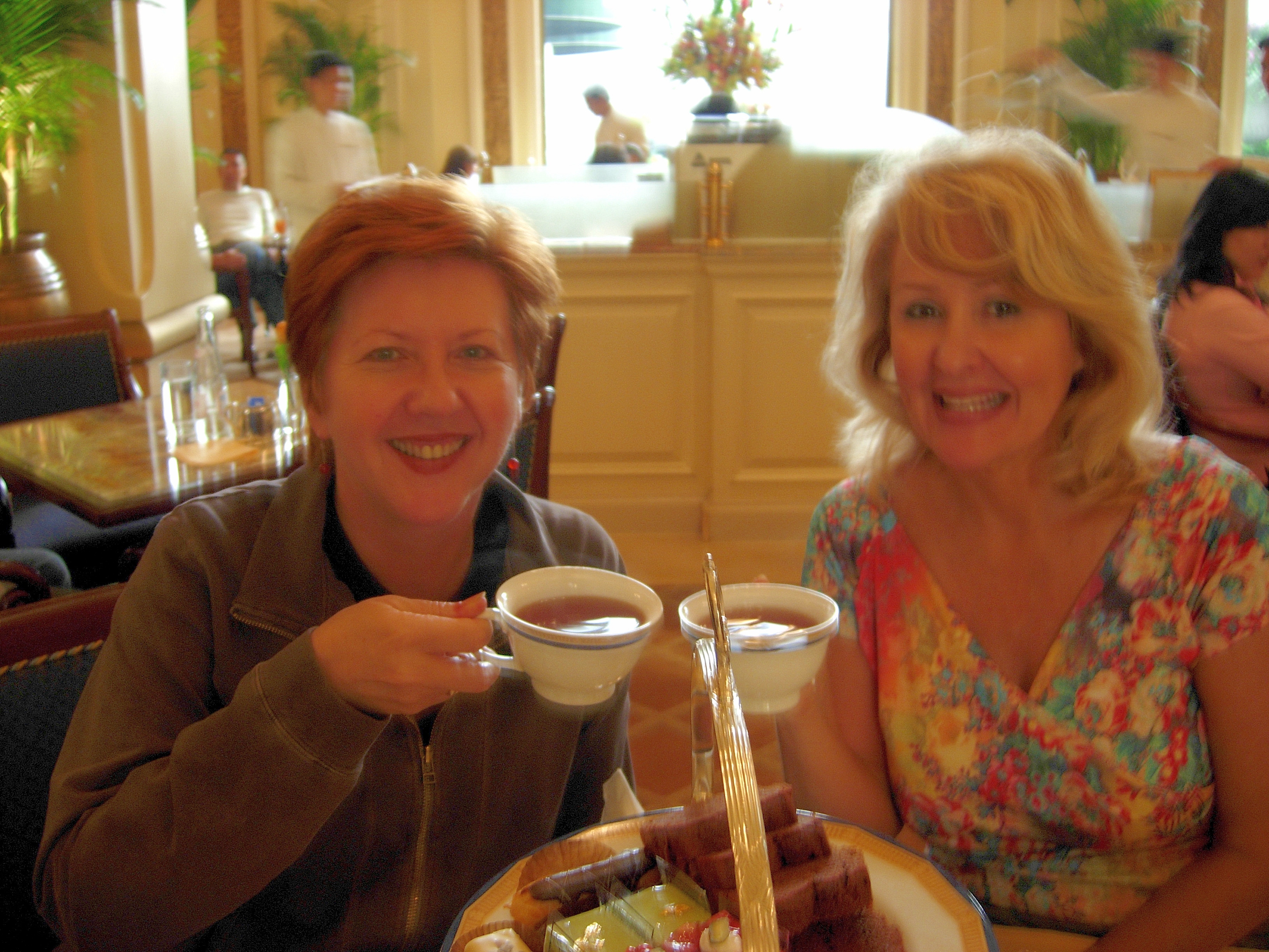 2) Team spirit.  Among other aspects of being in a group, it’s nice to have bathroom buddies from whom you can gather intel about the style of toilets, for example, (Western or squat) and the availability of toilet paper.  Someone always has Kleenex or handi-wipes when you’ve run out.  And I like having gals to shop with.  You may be looking all over for thimbles to bring back to Aunt Edna for her collection.  Another team member will be the one to find them for you.  And who would you dress up with, folks?  And what fun to have a friend go with you to have high tea at the Peninsula when your traveling companion isn’t interested.