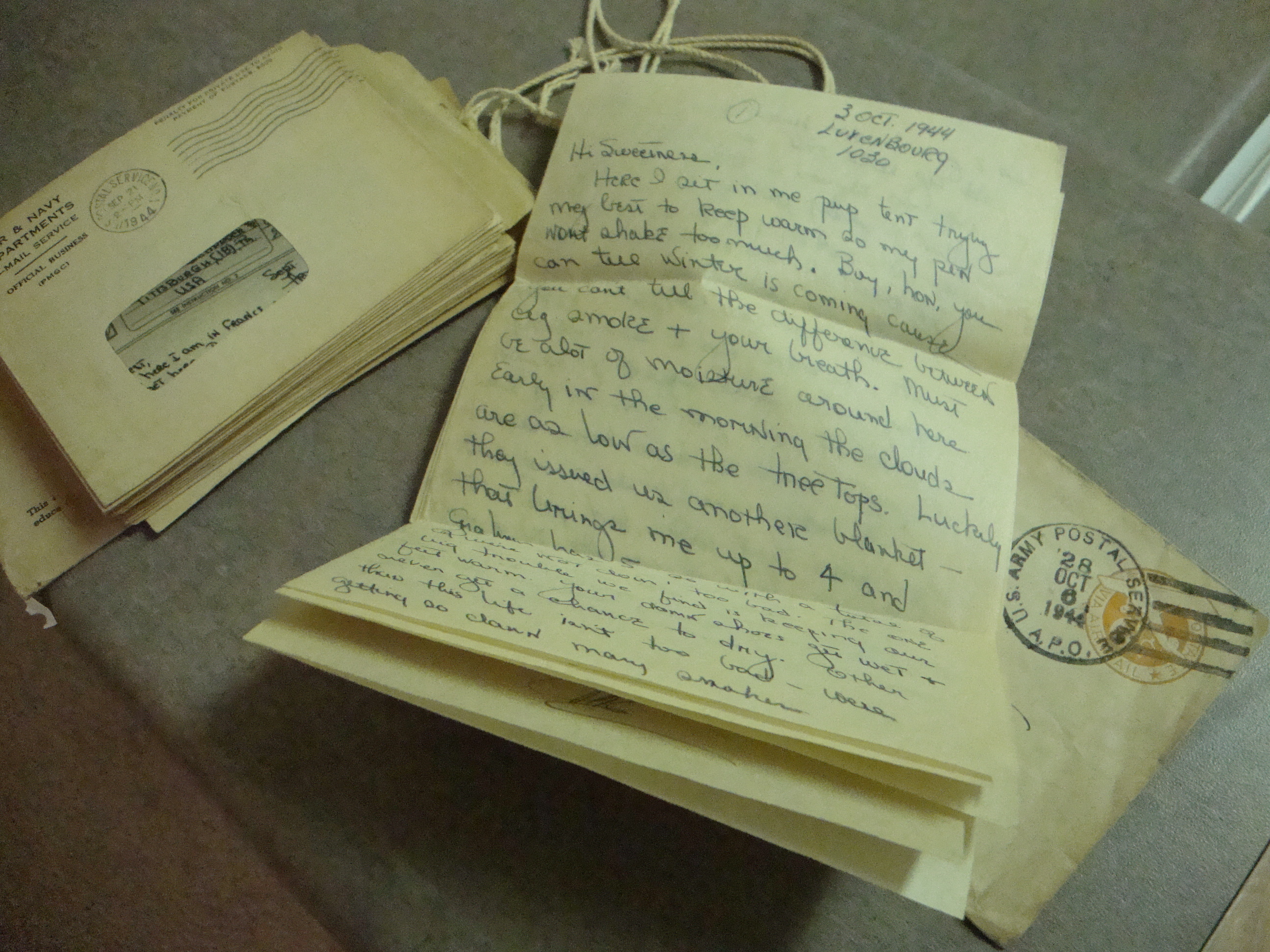 Those of you who’ve watched Band of Brothers and other war dramas may find nothing remarkable in the letters, but it’s one thing to see a dramatic rendition on a screen and another to hold these heart-felt missives in my hand, knowing that once they had been in his and sent off with such high hopes of following them home someday soon.  His longing for home and his sense of disconnection from the life he had led moved me more than I could have imagined.  I realized, in short, how much I take for granted in my own life, like knowing I would never endure the winter cold of northern Europe while waiting for war to end — or to kill or be killed.